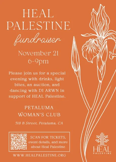 We are a small group of friends who, like many of you, have felt helpless watching the ongoing genocide in Gaza. Inspired by the trusted, transparent work of HEAL Palestine, we’ve decided to take action and host a fundraiser on Friday November 21, 2025 at the Petaluma Woman's Club to support their life saving mission. Please note that we did change the date to 11/21!